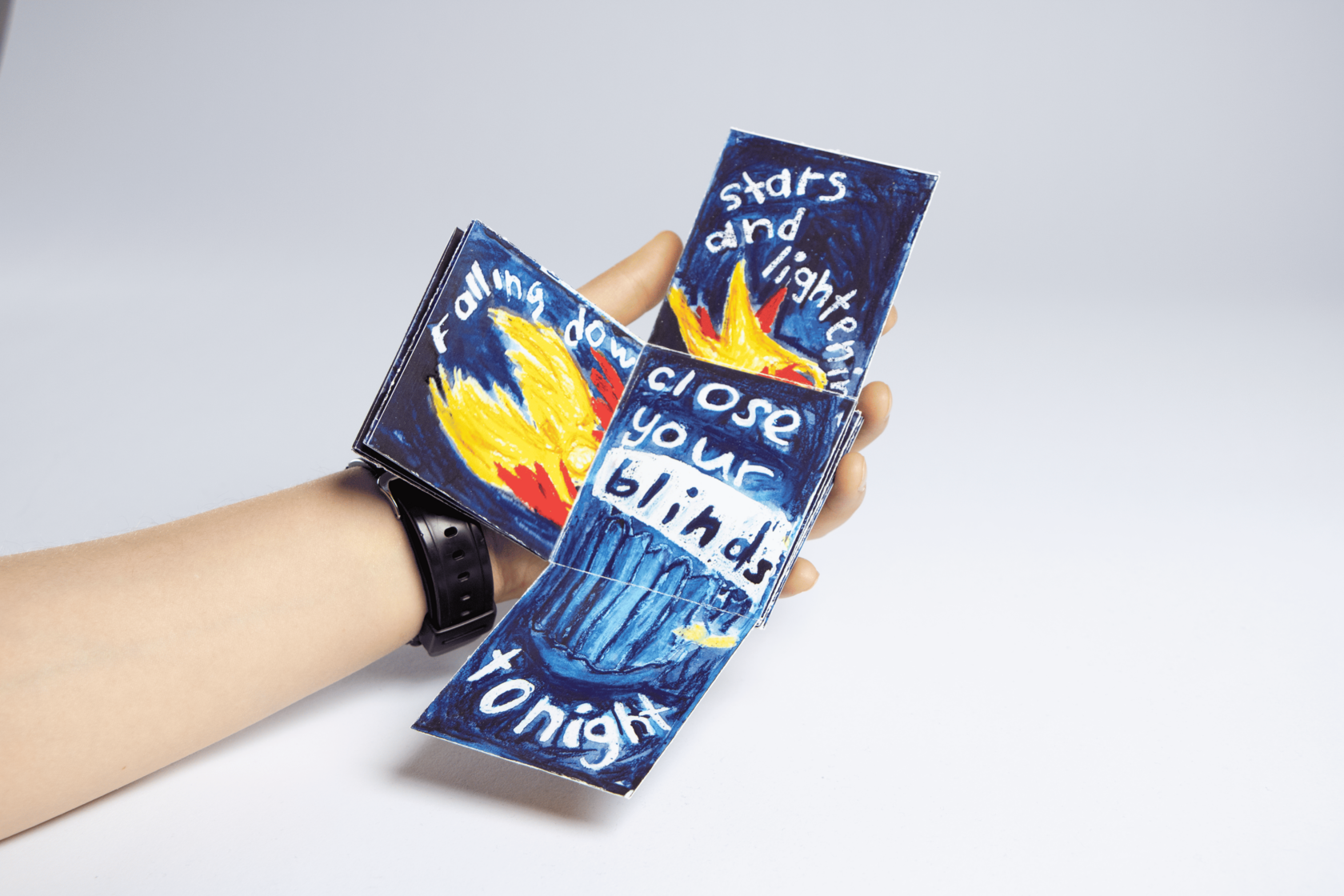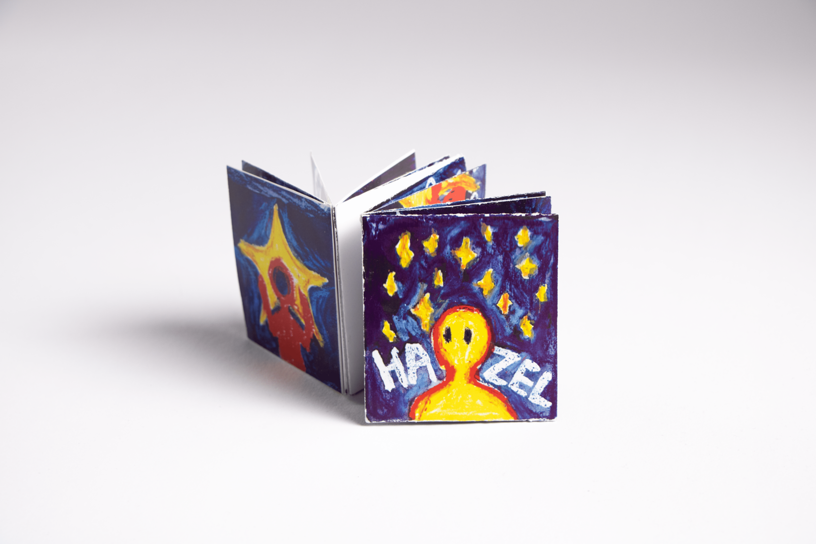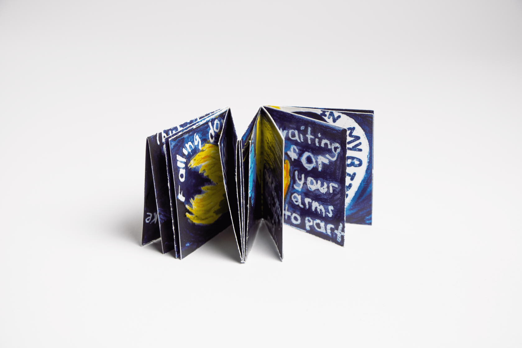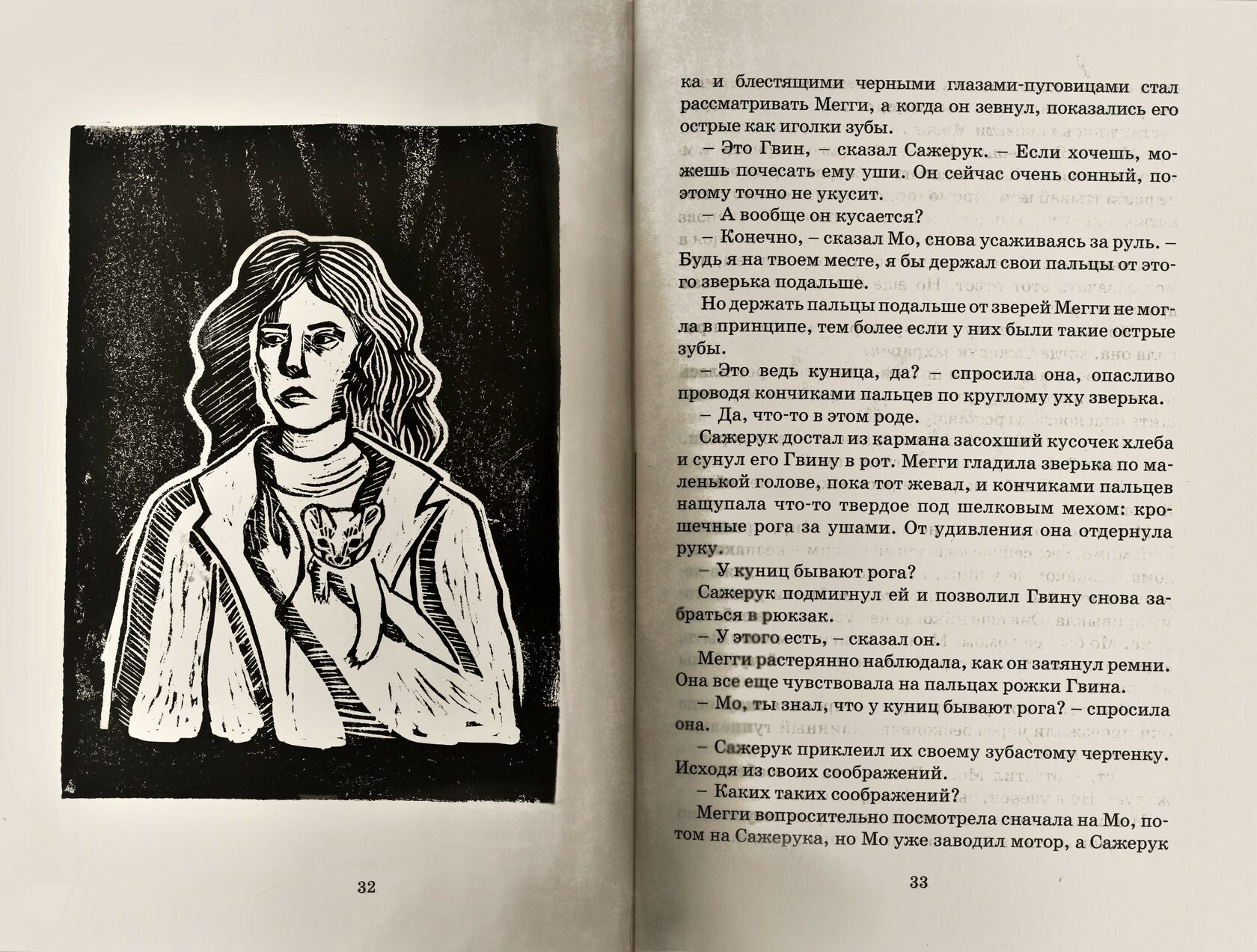 This book illustration was made using linocut; you can make a lot of duplicates (stamps of the picture). The illustration is based on an excerpt from the book "Ink Heart".