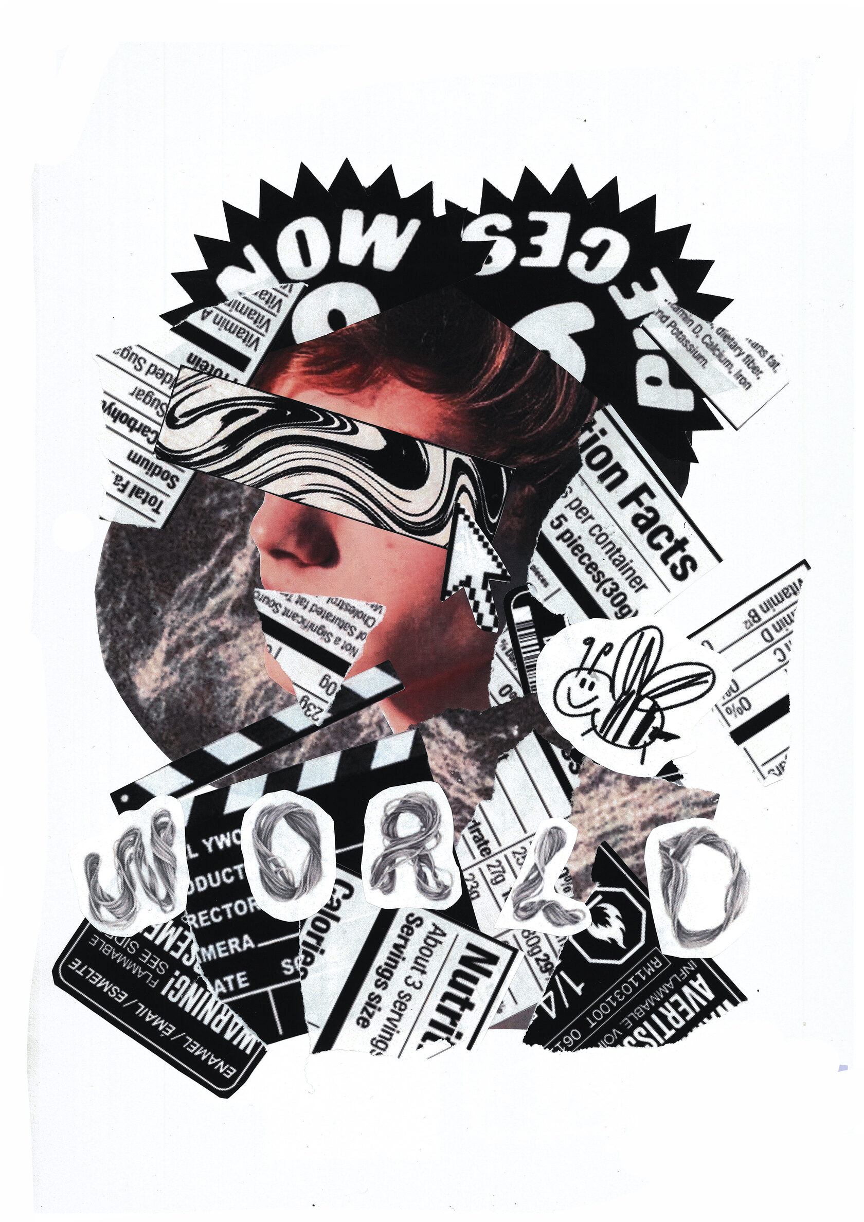 This collage is inspired by the direction called vaporwave, the main details of which are simple shapes, neon colors, and retro, techno fonts.